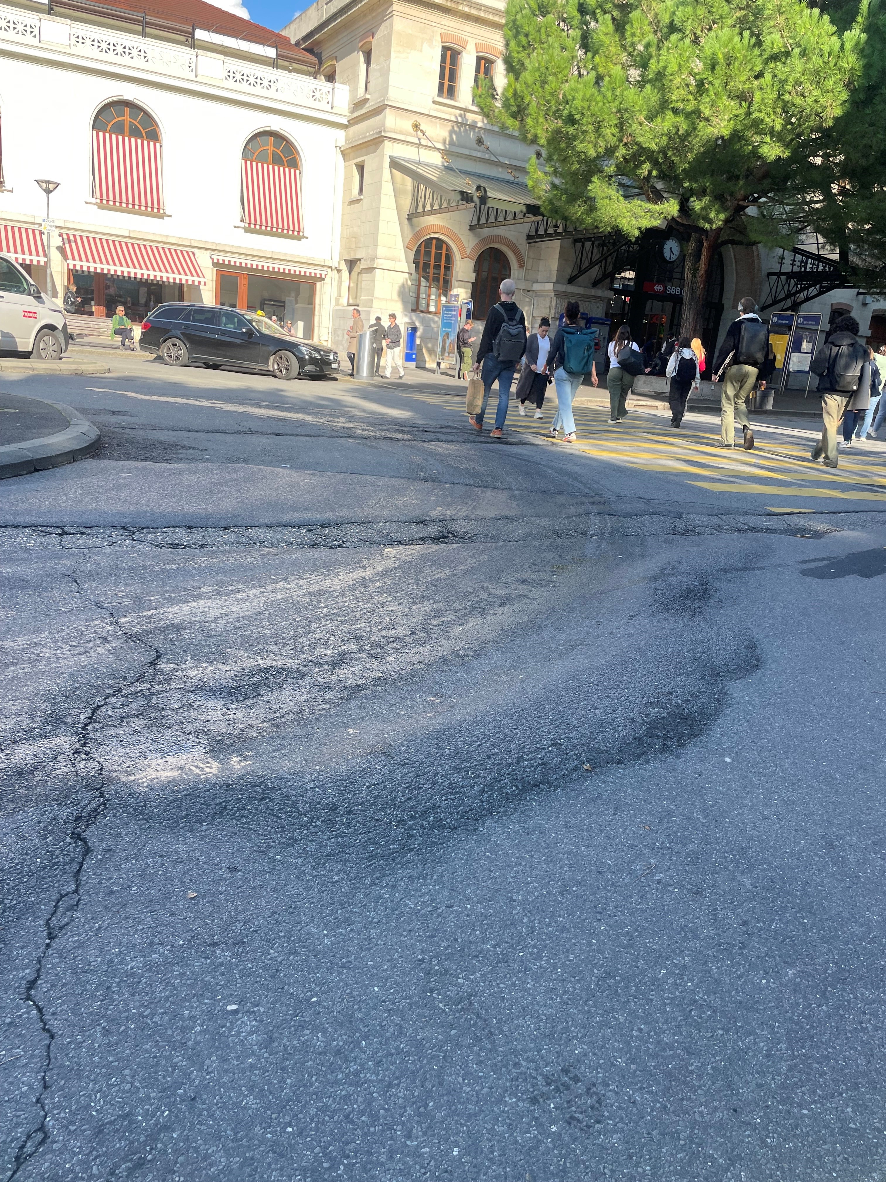 Réfection de la chaussée devant la gare de Vevey